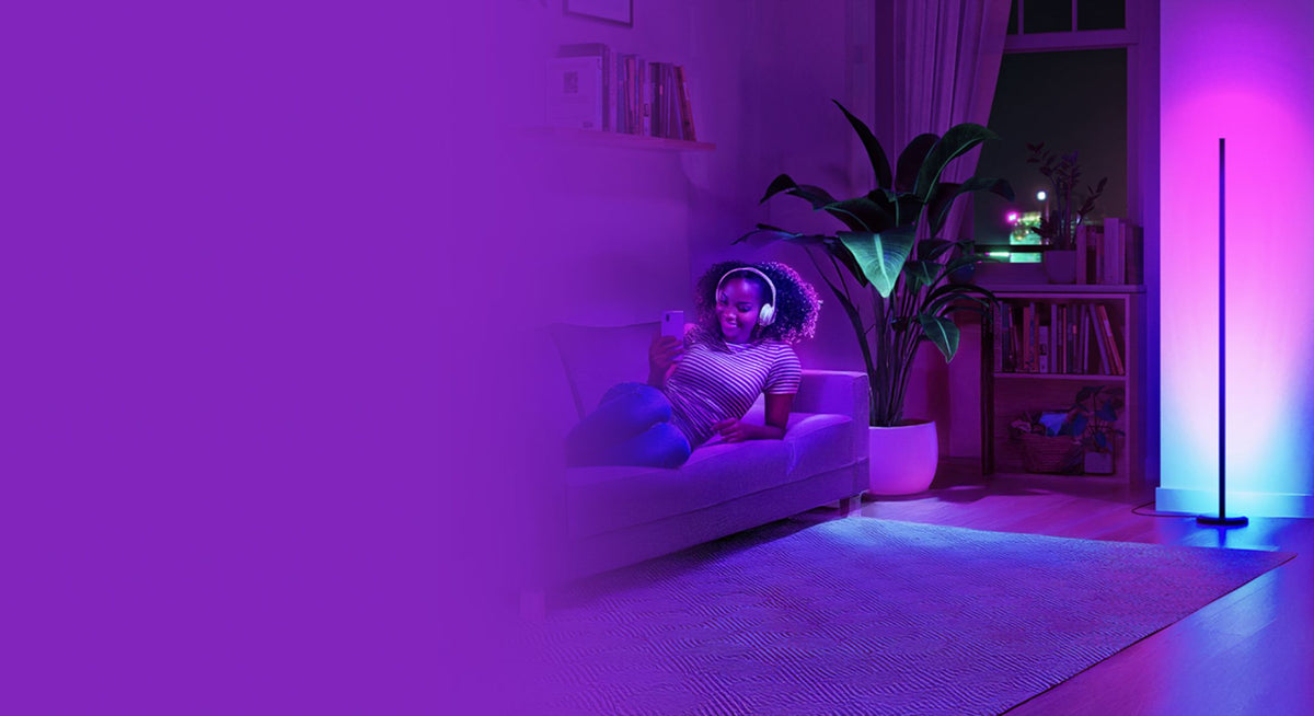 Transform your space with the ambient illumination of our Matter-enabled Smart Multicolor Floor Lamp. Choose from 10 curated lighting Scenes designed to suit any mood, or create your own with over 16 million colors and tunable whites.