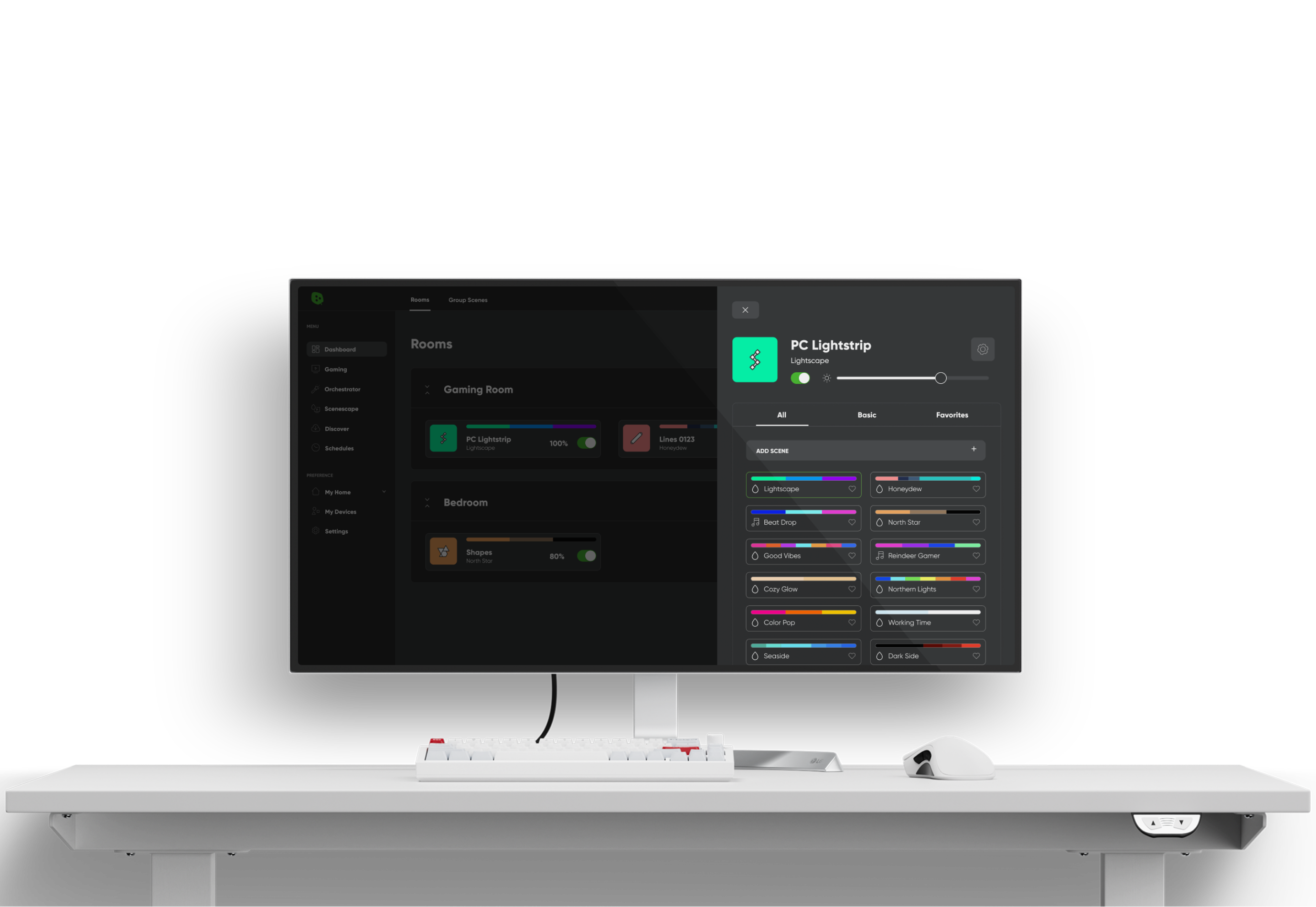 Pair with the Nanoleaf Desktop App instantly just by plugging your Pegboard Desk Dock into your computer to access the full suite of Nanoleaf features.
