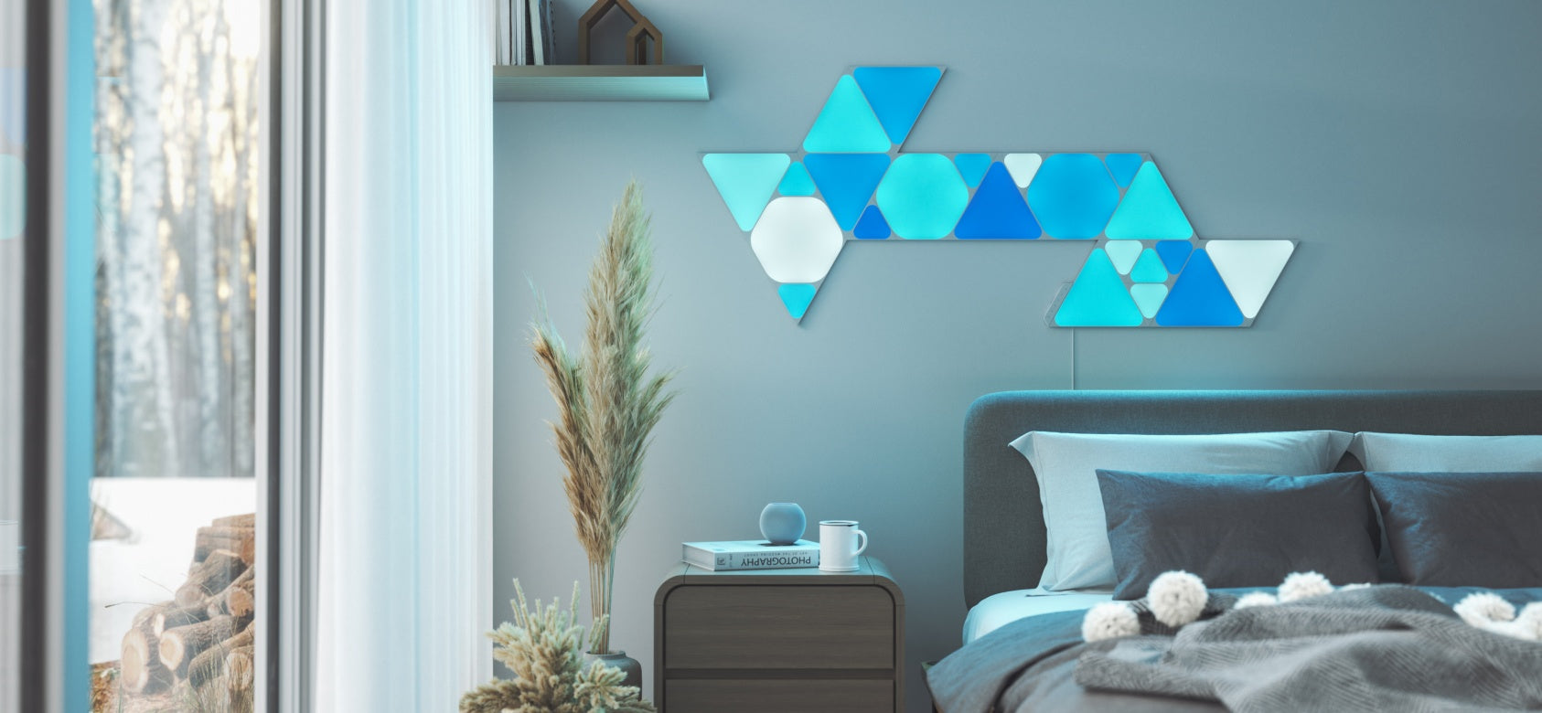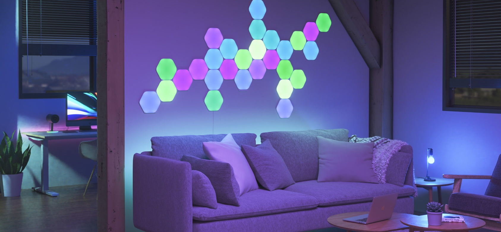 The Nanoleaf Shapes differ from the Canvas and the Light Panels by size and shape. The functionality of Shapes is the same as with the Canvas—both have the touch feature and built-in music Visualizer. Nanoleaf Light Panels do not have touch control, and music visualization is enabled with the Rhythm add-on module.